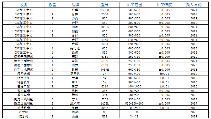 公司應開發需求,擁有各類精密加工設備60臺,我司設備清單。